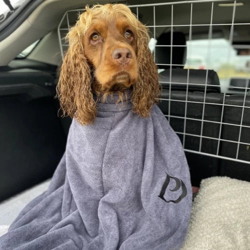 "Reggie is not a fan of wet walks but will happily snuggle up in his lovely towel. Such a great size and does a brilliant job of wiping down muddy paws and drying off on a rainy day. Can’t recommend this enough."