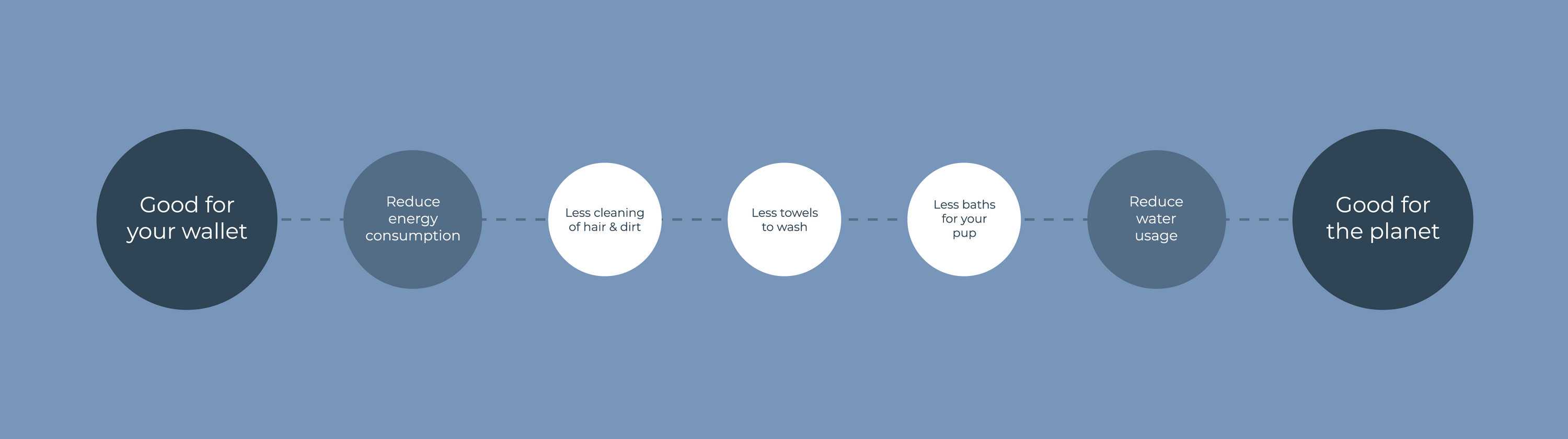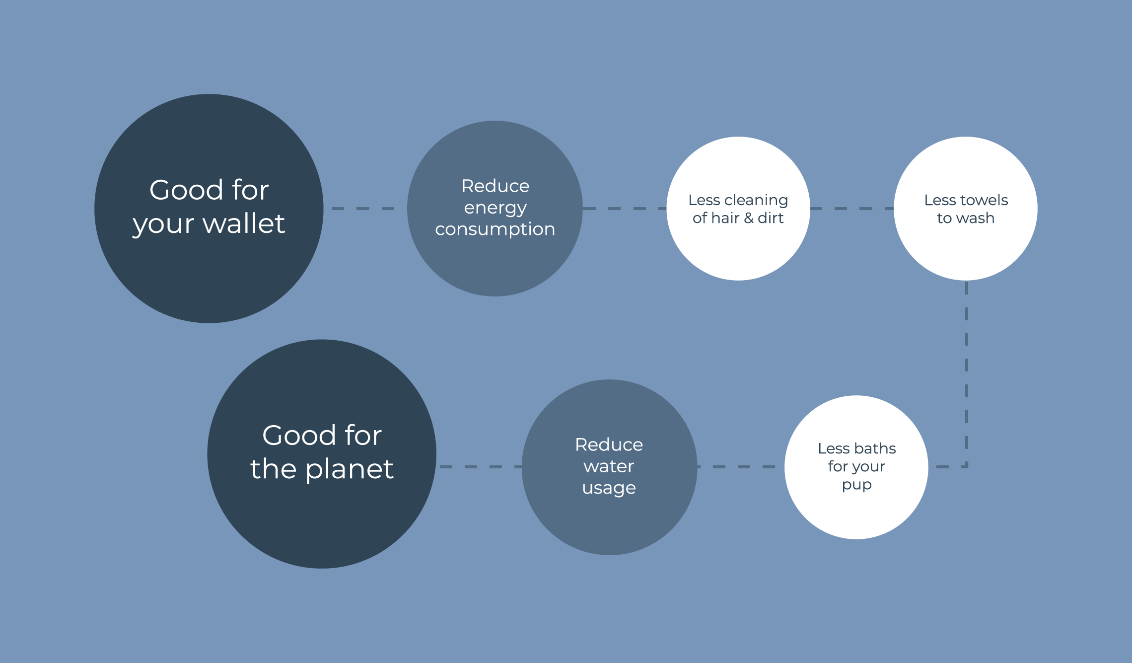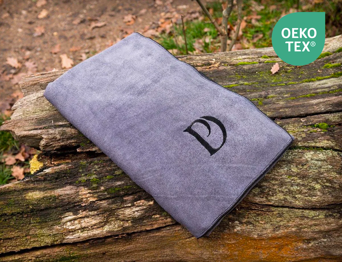 We use premium, OEKO-TEX certified, super-absorbent materials to make our drying bags, towels and blankets. Due to the very special fibres, our drying bags, towels and blankets don't hold onto mud, dirt or sand as normal dog towels do meaning you can use them 4 - 5 times between washing on average.