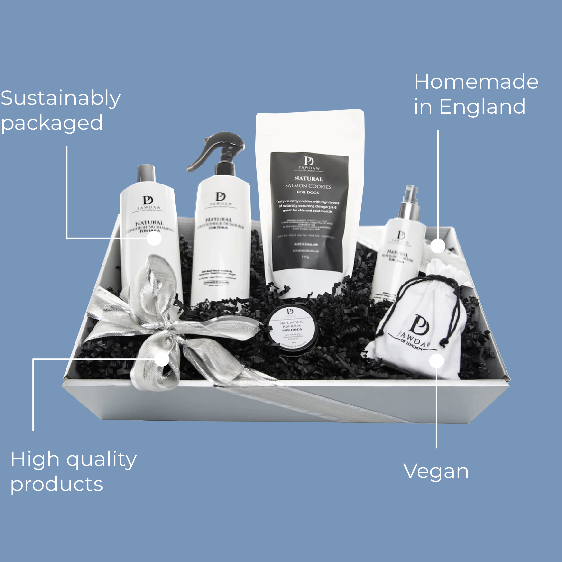 Containing everything you could possibly need to pamper a pup, our gift boxes are a great way to spoil your dog or send as a thoughtful gift to your favourite paw-friend. Our grooming products are made with natural and nourishing ingredients that are kind to your pup's sensitive skin.